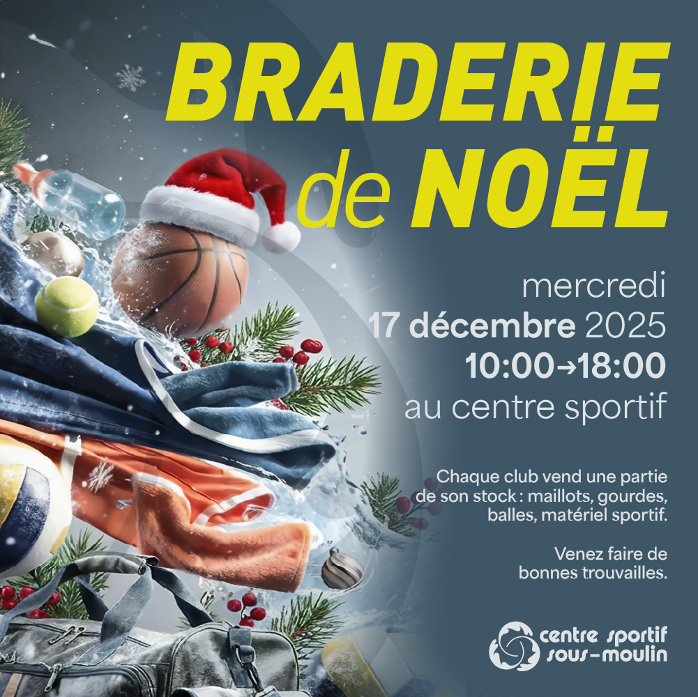 17déc. 2025 Braderie de Noël : CSSM 10:00 - 18:00 Centre sportif Sous-Moulin Plus d'informations : CSSM Voir le calendrier