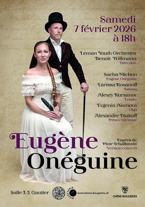 Leman Youth Orchestra, direction Benoit Willmann, avec Sacha Michon, Larissa Rosanoff, Alexey Kursanov, Carine Séchaye, Alexandre Diakoff. L’opéra de Piotr Tchaïkovski, version concert.